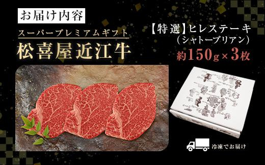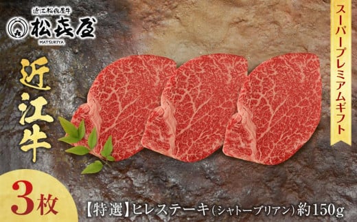(スーパープレミアムギフト)松喜屋近江牛特選ヒレステーキ(シャトーブリアン)約150g×3枚