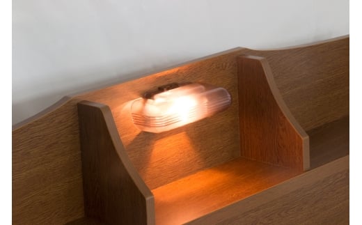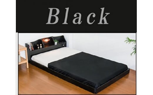 【組立サービス付】320 セミダブルサイズ 棚照明コンセント付きデザインフロアベッド 国産ポケットコイルマットレス(108618)付(ブラック)(1460)