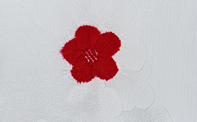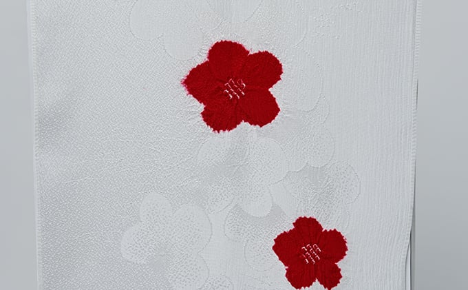 帯揚げ 白地に赤 絞り 輪出し リンダシ 帯上げ 着物に [№5275-0231]
