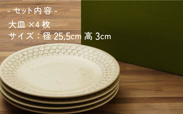 【美濃焼】フラワースタンプ コットン 大皿 食器セット(合計4枚)【うつわやさん-カネ忠】 [MBO037]