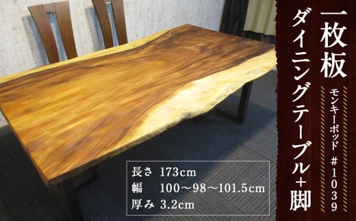 #-1039 【モンキーポッド】 一枚板 ダイニングテーブル+脚 1セット 家具 机 テーブル インテリア 日本製 木製