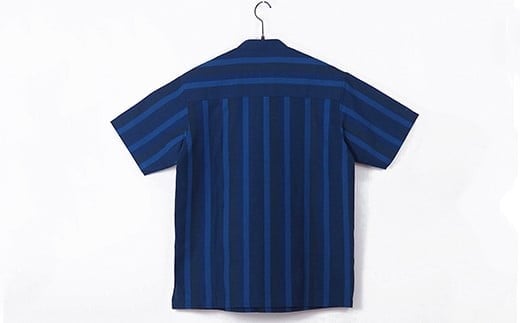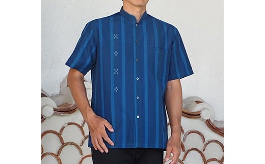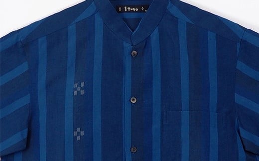 - AZ-78 みんさー織 総手織りマオカラーシャツ(藍ストライプ)Lサイズ