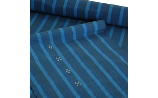 AZ-78 みんさー織 総手織りマオカラーシャツ(藍ストライプ)Lサイズ