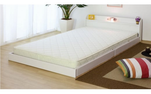 - 【組立サービス付】268 シングルサイズ 棚コンセント照明付フロアベッド 国産ポケットコイルマットレス(108618)付(ホワイト)(1510)