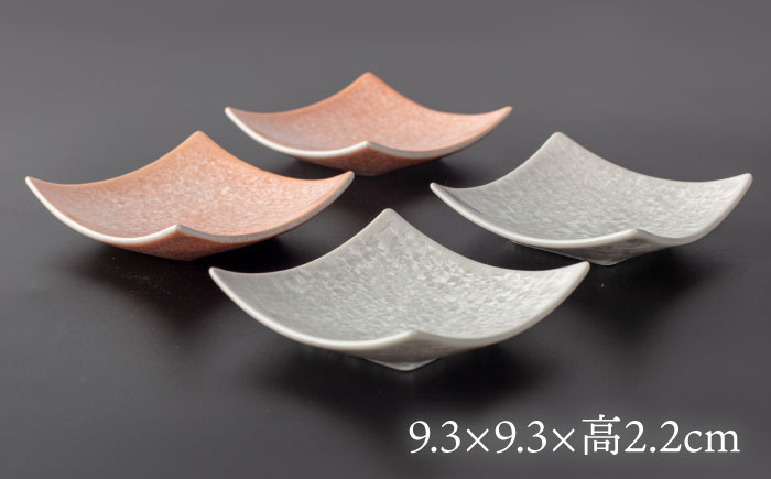 【美濃焼】 スクエアディッシュ 4枚セット オレンジ × ホワイト 「咲」 【多治見トレーディング/隠れ窯】 多治見市 食器 皿 プレート [TEG028]