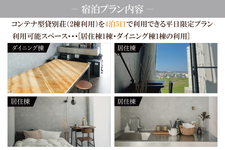 平日限定 OURoom 1st 貸別荘 2棟利用 4泊5日プラン コンテナハウス 大洗 ワーケーション 2拠点生活体験 移住体験 旅行 レジャー 茨城 宿泊券 わづくる