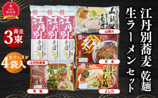 江丹別蕎麦 乾麺 3束・生ラーメンセット (山頭火あわせ、天金醤油、青葉、よし乃)_01855