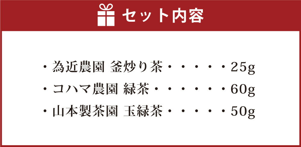 - 【ふるさと納税】「大抜茶」新茶3種【為近農園 釜炒り茶(25g)・コハマ農園 緑茶(60g)・ 山本製茶園 玉緑茶(50g)】