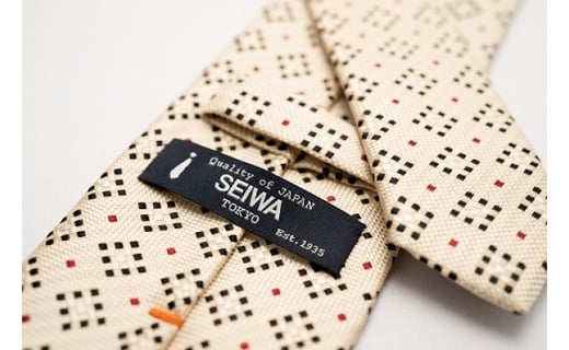- 【受注生産】匠の技術で織り上げるシルク100%のモザイク小紋柄ネクタイ(ライトイエロー)