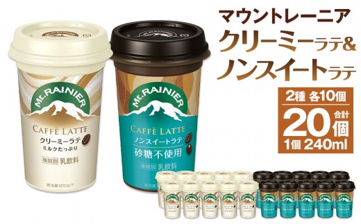 森永乳業 マウントレーニア カフェラッテクリーミーラテ240ml×10個・マウントレーニア カフェラッテノンスイート 240ml × 10個