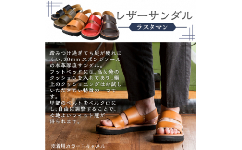 K-102-G-235 本革ハンドメイドのレザーサンダル「ラスタマン」(キャメル・23.5cm)【ヒラキヒミ。】