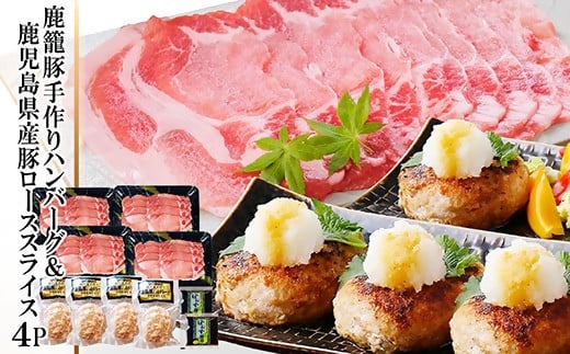 鹿籠豚手作りハンバーグ&鹿児島県産豚ローススライス4P A3-142【1166318】