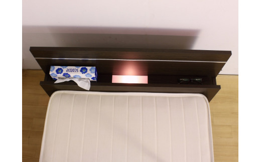 【組立サービス付】285 セミシングルサイズ 棚 照明付ラインデザインベッド 国産ボンネルコイルマットレス(10816B)付(ダークブラウン)(1388)