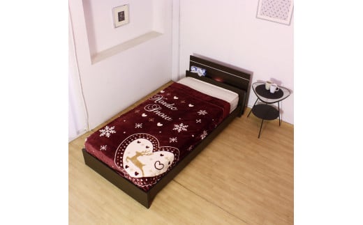- 【組立サービス付】285 セミシングルサイズ 棚 照明付ラインデザインベッド 国産ボンネルコイルマットレス(10816B)付(ダークブラウン)(1388)