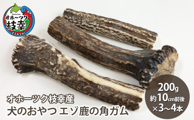犬のおやつ エゾ鹿の角ガム200g(約10cm前後×3~4本)【オホーツク枝幸産】