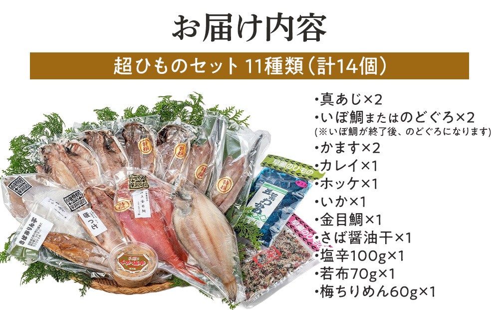 超ひものセット【惣菜 魚 干物 ひもの お取り寄せ 御中元 お中元 お歳暮 父の日 母の日 贈り物 家庭用 自宅用 贈答品 贈答用 ギフト 定番 朝食 朝ごはん あじ いぼ鯛 かます かれい ホッケ いか 金目鯛 さば 神奈川県 小田原市 】