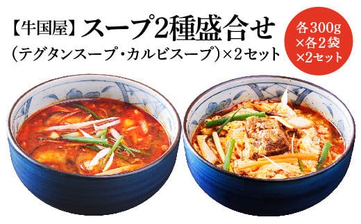 - 【牛国屋】スープ2種盛合せ(テグタンスープ、カルビスープ) 各300g×2袋×2セット 【11100-0789】
