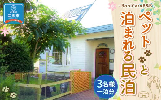 ペットと泊まれる民泊 BoniCaroB&B 3名様一泊分 宿泊券
