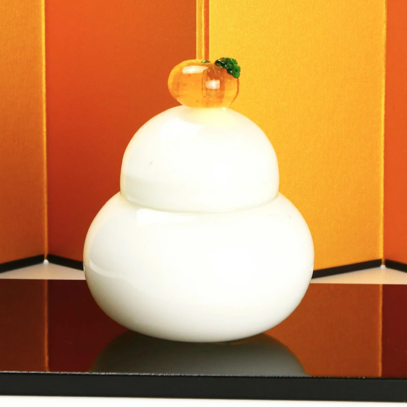 ガラスの鏡餅 大 白 <コンパクトで便利!贈り物にも!> / かがみもち お正月 飾り 置物 新年 迎春 職人 手作り ハンドメイド ガラス細工 ガラス製品 インテリア 受注制作