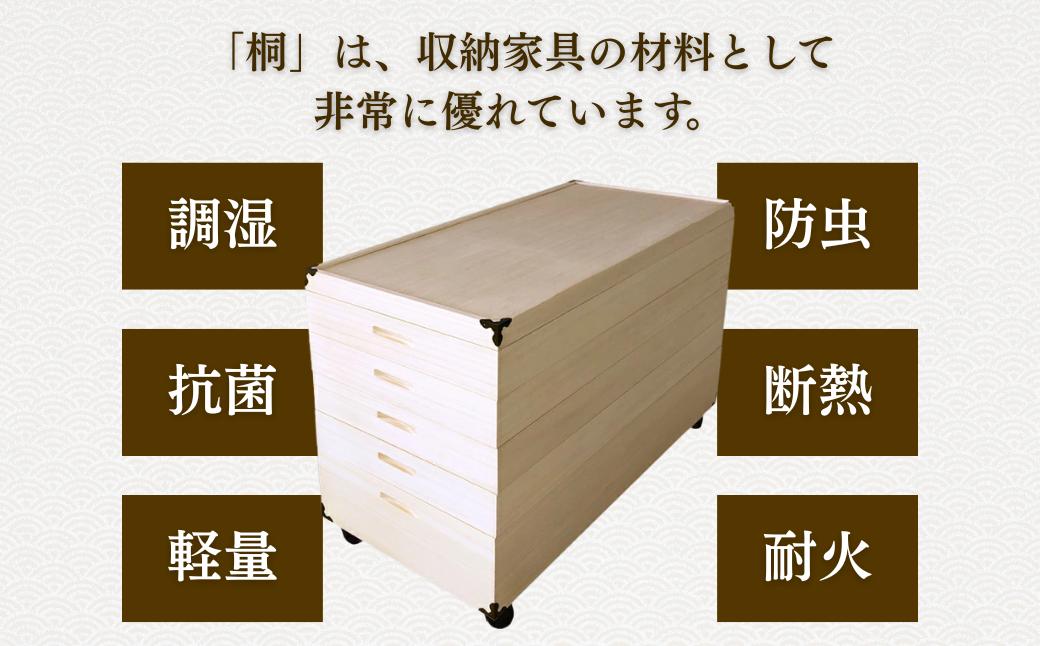 - 桐たんす 移動も楽々キャスター付きの着物収納 桐箱5段:B850-007