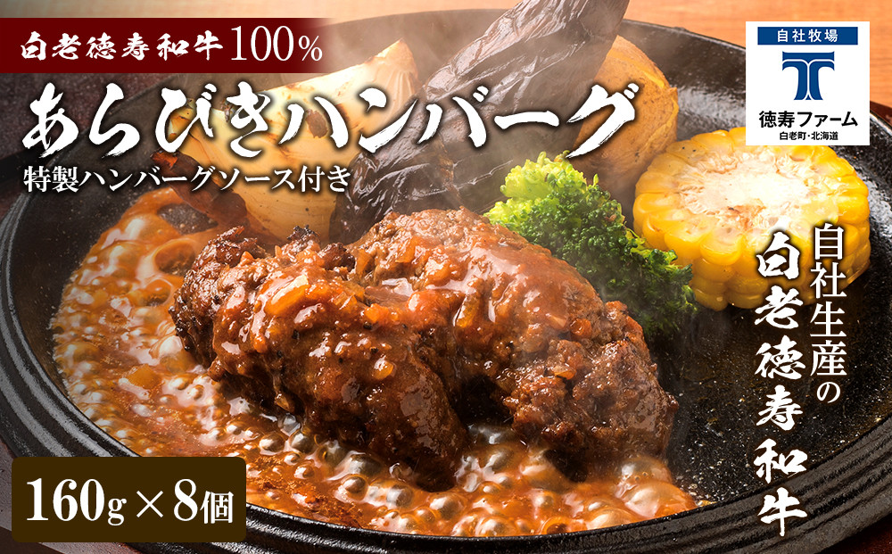 和牛 粗びき 生 ハンバーグ 8個セット デミグラスソース付き 160g×8袋