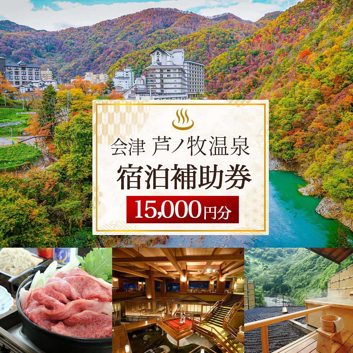 【ふるさと納税】会津芦ノ牧温泉宿泊補助券 15,000円分|東北 福島県 会津若松 旅行 クーポン 利用券 [0081]