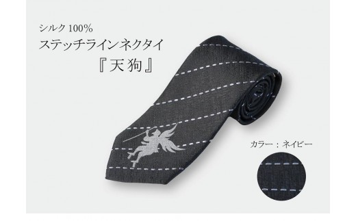 シルク100%で胸元を際立たせる ステッチラインネクタイ 「天狗」(ネイビー)