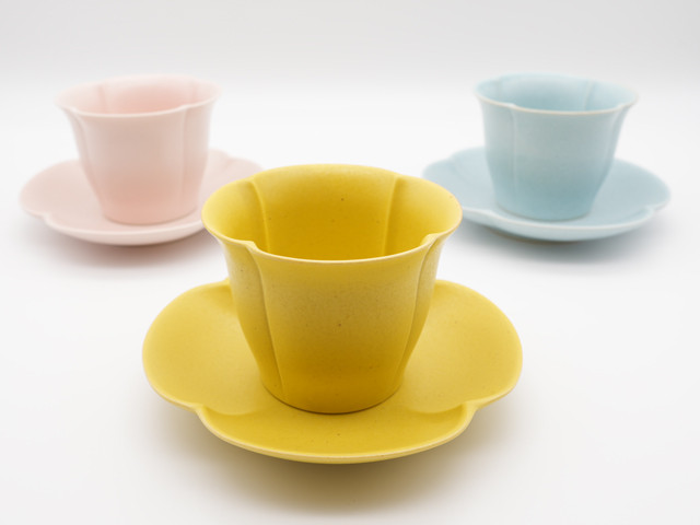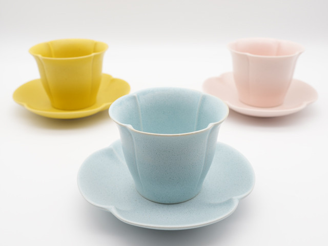 - フローラ カップアンドソーサー 3客セット(ピンク、ブルー、イエロー)
