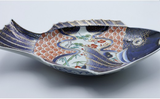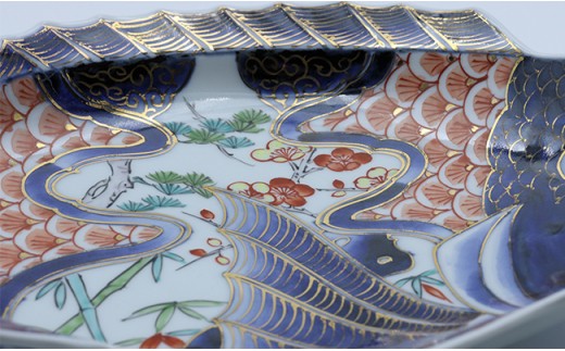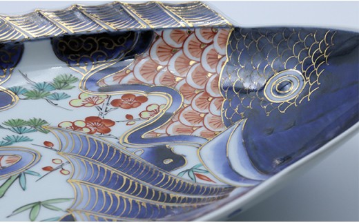 - 梶謙製磁社 有田焼 招福鯛メデタイシリーズ 松竹梅文様(大皿36cm鯛) A200-46