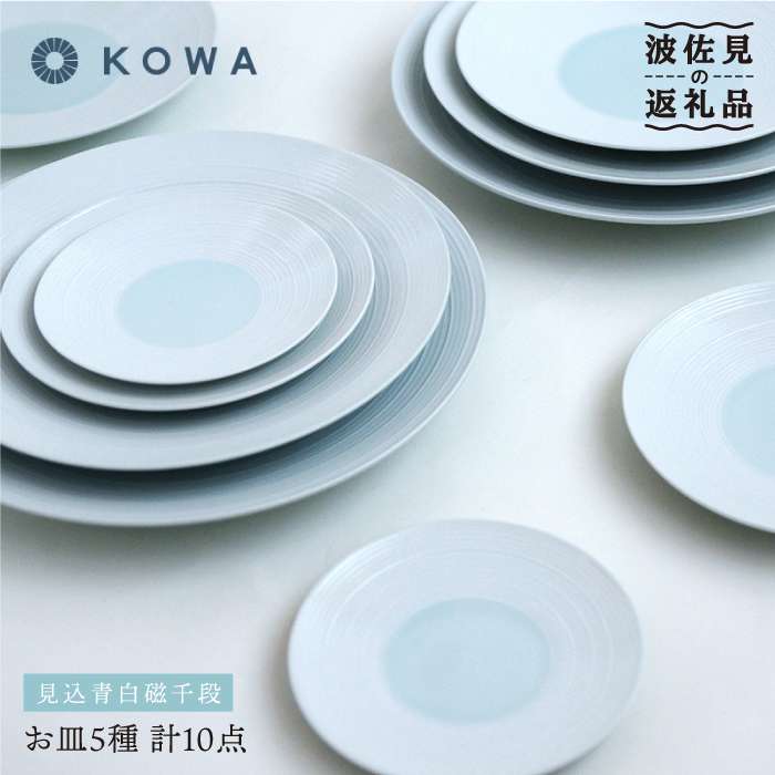 - 【ふるさと納税】【波佐見焼】見込青白磁千段 お皿10枚セット 小皿 大皿 食器 皿 【光和陶器】 [SC24]