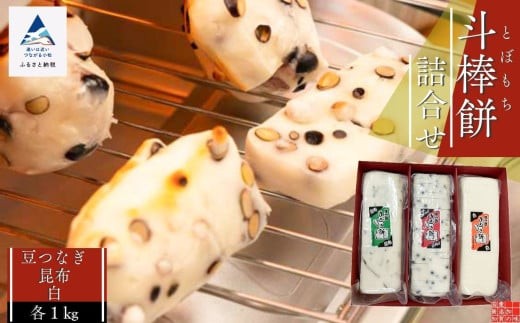 ふるさとの味覚 真空斗棒餅詰合せ 各1kg×3本(豆つなぎ・昆布・白)