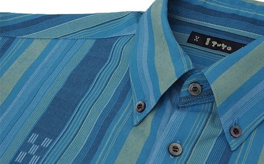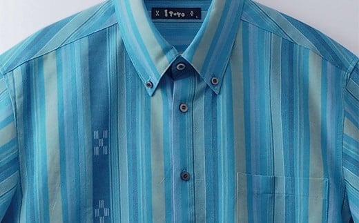 - AZ-85 みんさー織 総手織りボタンダウンシャツ(ニライカナイBL)LLサイズ