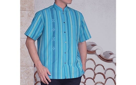AZ-81 みんさー織 総手織りマオカラーシャツ(ニライカナイBL)Lサイズ