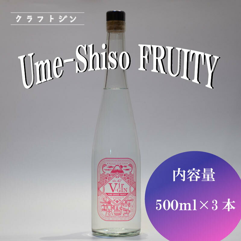 - 【ふるさと納税】 クラフト ジン Vir-GIN Ume-Shiso FRUITY 500 ml × 3本 セット ギフト 贈答 アルコール 沼津 静岡 国産 梅 紫蘇 酒