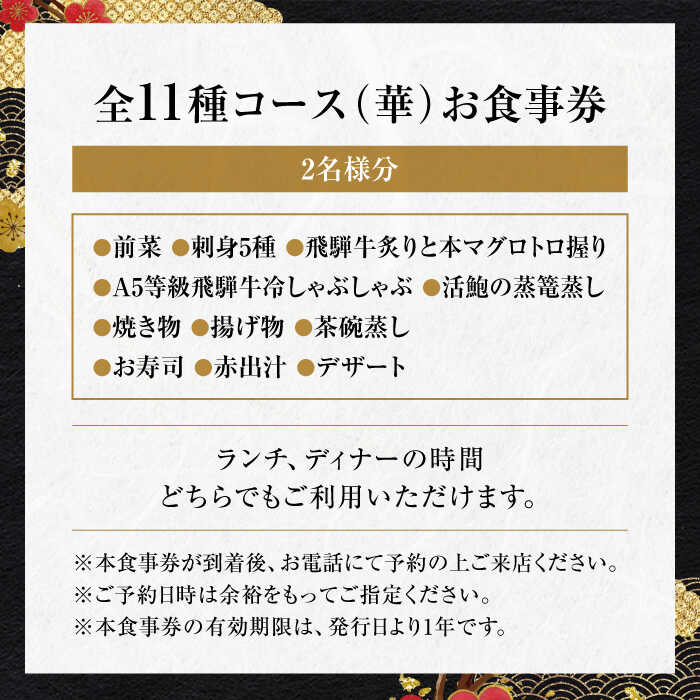 - 【ふるさと納税】【和食割烹レストラン 駒寿し】月替わり会席 全11種コース(華)お食事券 2名様 ペア / 日本料理 会席 飛騨牛 [MGD001]