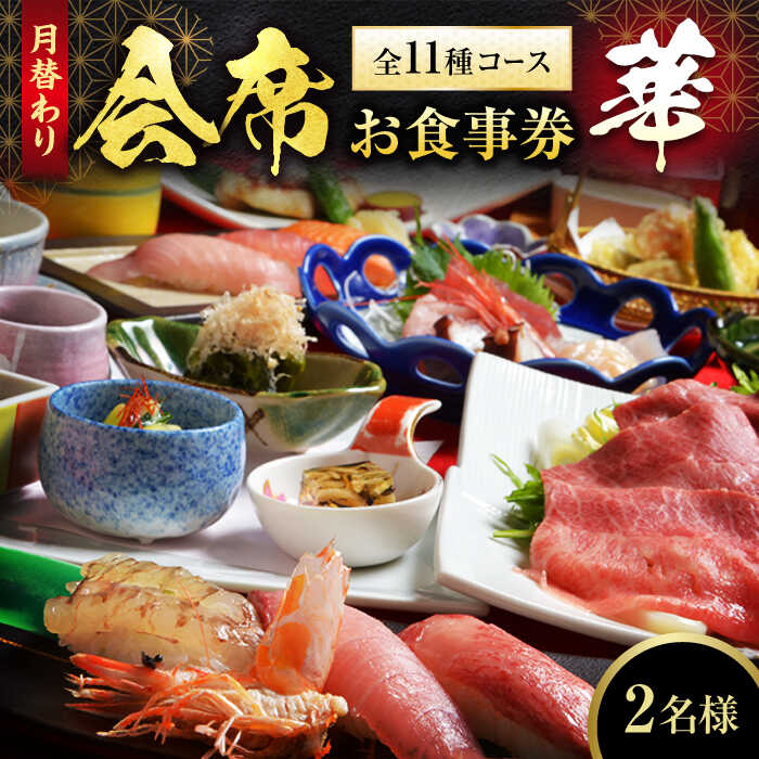 【ふるさと納税】【和食割烹レストラン 駒寿し】月替わり会席 全11種コース(華)お食事券 2名様 ペア / 日本料理 会席 飛騨牛 [MGD001]