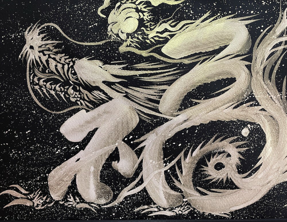 - 【ふるさと納税】「一筆銀福龍」絵師白道 作|絵画 アート インテリア 手描き 一筆 龍 日本画 現代アート ハンドメイド作品 水墨画 かっこいい 作品 縁起 風水 [0625] 220000円