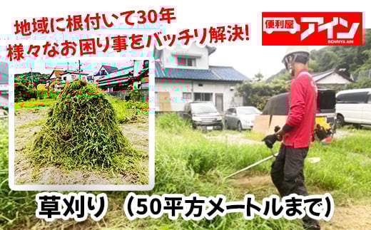 - 草刈り(50平方メートルまで)便利屋アイン岩国本店 ※お申込み前にご連絡ください