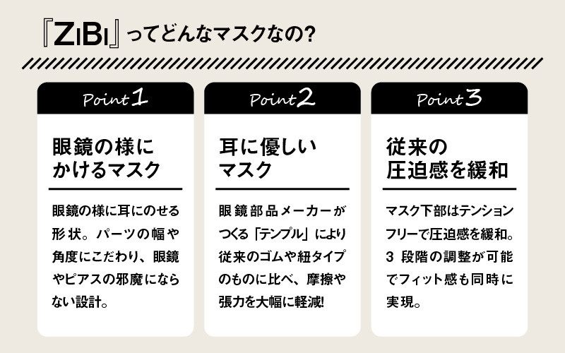 グッドデザイン賞2021受賞 マスクのヒモから解放 メガネ技術×新発想のマスク『ZiBi』 [B-09502]