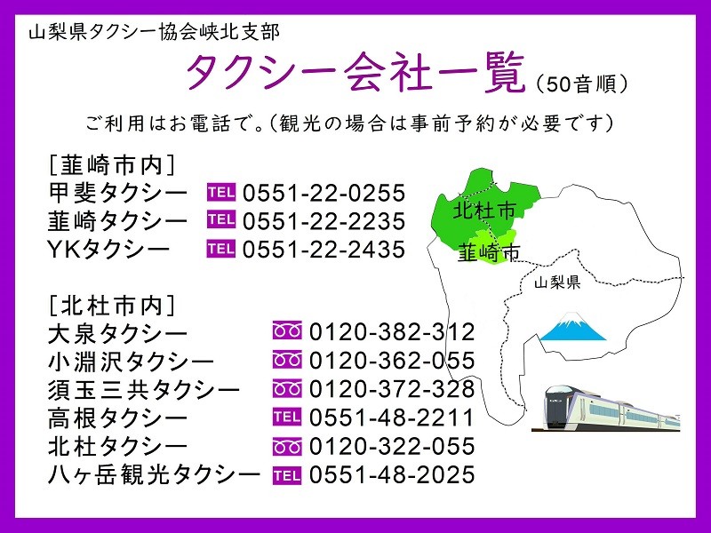 - 北杜市・韮崎市内で使える!お出かけタクシー券 3,000円分
