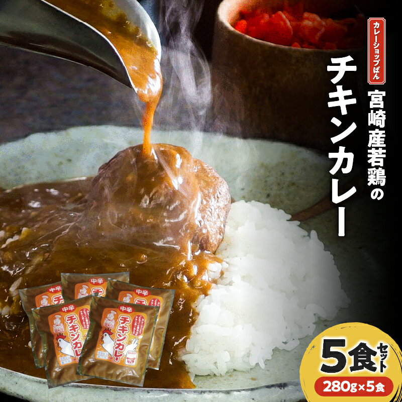 【ふるさと納税】カレーショップばん 宮崎産 若鶏 チキンカレー 5食 セット チキン チキンボール 鶏肉使用 宮崎県産若鶏 老舗 カレー専門店 レトルト 惣菜 ごはん おかず 簡単調理 グルメ お取り寄せ 人気 おすすめ 加工品 加工食品 レトルト食品 宮崎県 宮崎市 送料無料