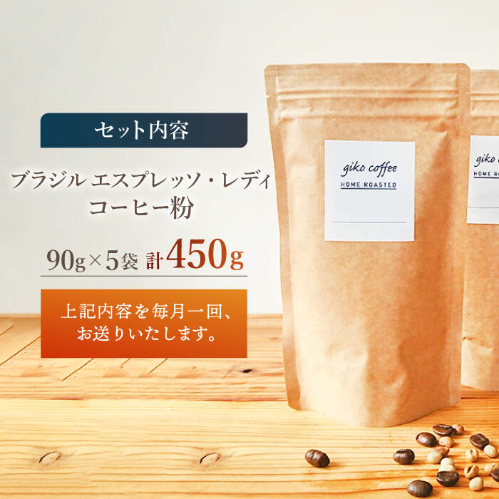 - 【ふるさと納税】【粉タイプ】【12回定期便】 深煎り ブラジル エスプレッソ・レディ 自家焙煎コーヒー 5袋<giko coffee> [CFK028]