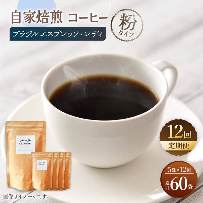 【ふるさと納税】【粉タイプ】【12回定期便】 深煎り ブラジル エスプレッソ・レディ 自家焙煎コーヒー 5袋<giko coffee> [CFK028]