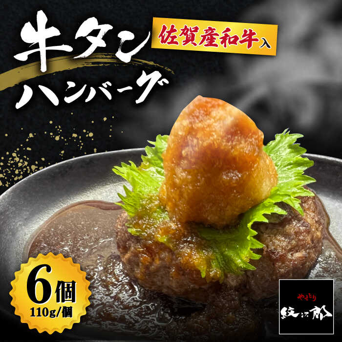 【ふるさと納税】【釣りよか。youtubeで紹介】佐賀産和牛入 牛タンハンバーグ 6個入り おろしポン酢付 吉野ヶ里町/やきとり紋次郎 [FCJ083]