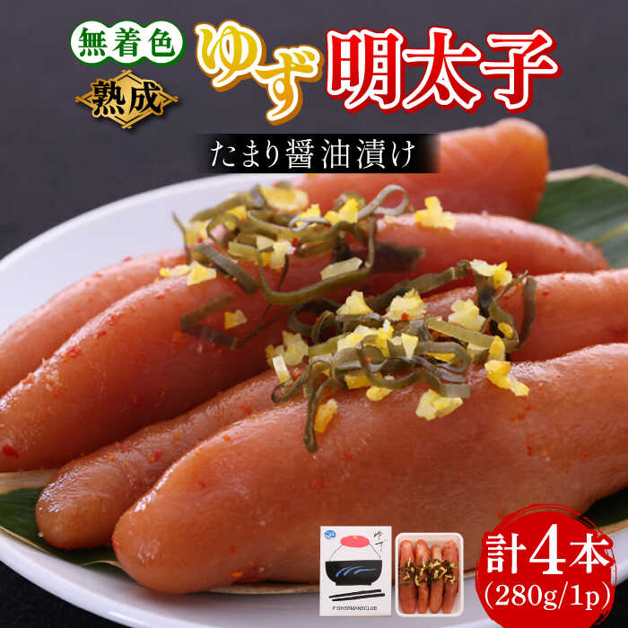- 【ふるさと納税】熟成 たまり醤油漬け 無着色 ゆず明太子 4本入り(280g)《築上町》【有限会社フィッシャーマンズクラブ】 明太子 めんたい14000円 [ABCU012]