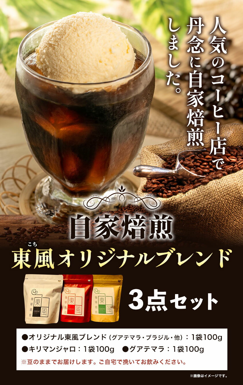 【ふるさと納税】珈琲 自家焙煎 コーヒー豆 焙煎珈琲 東風 オリジナルブレンド 100g×3袋 セット《30日以内に出荷予定(土日祝除く)》岡山県 備前市 オリジナル東風ブレンド キリマンジャロ グアテマラ コーヒー豆 0010-G-159