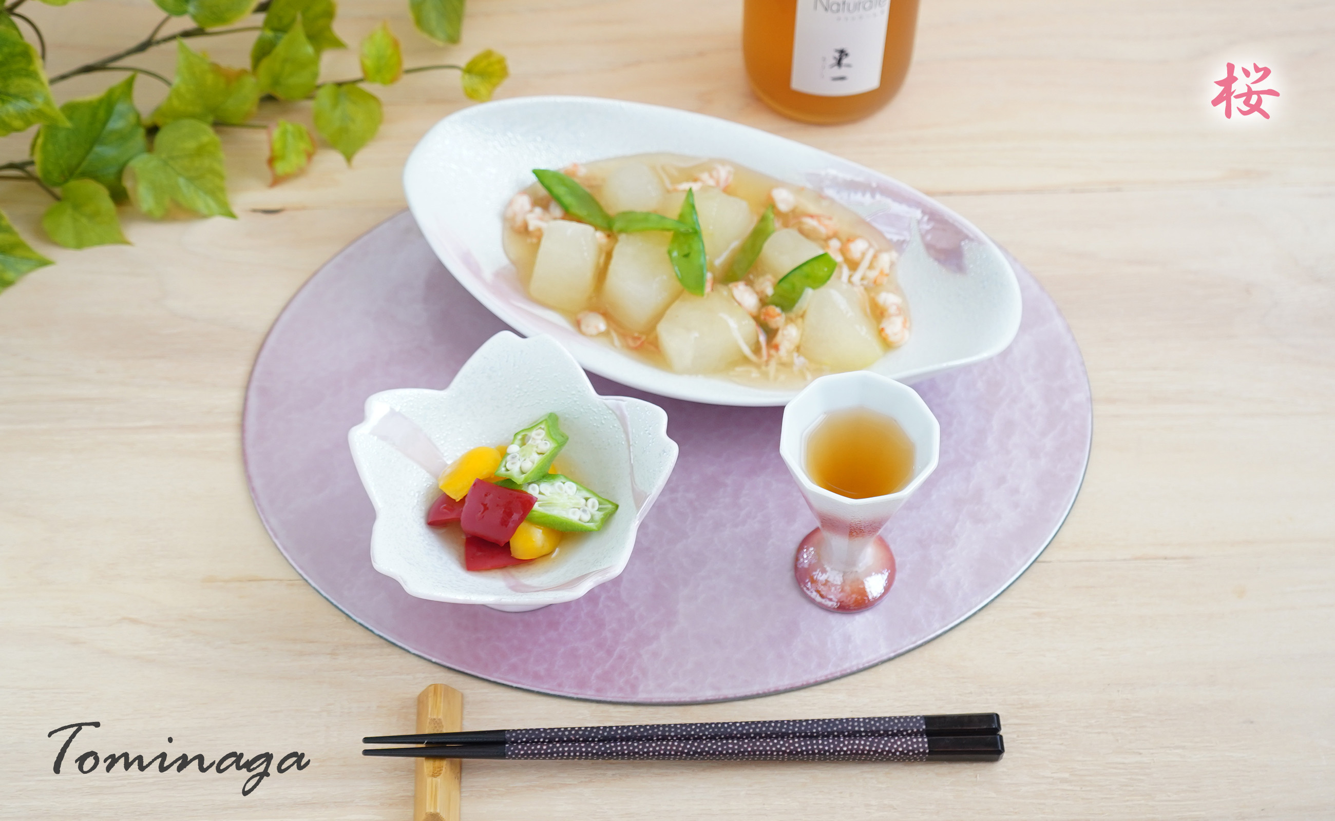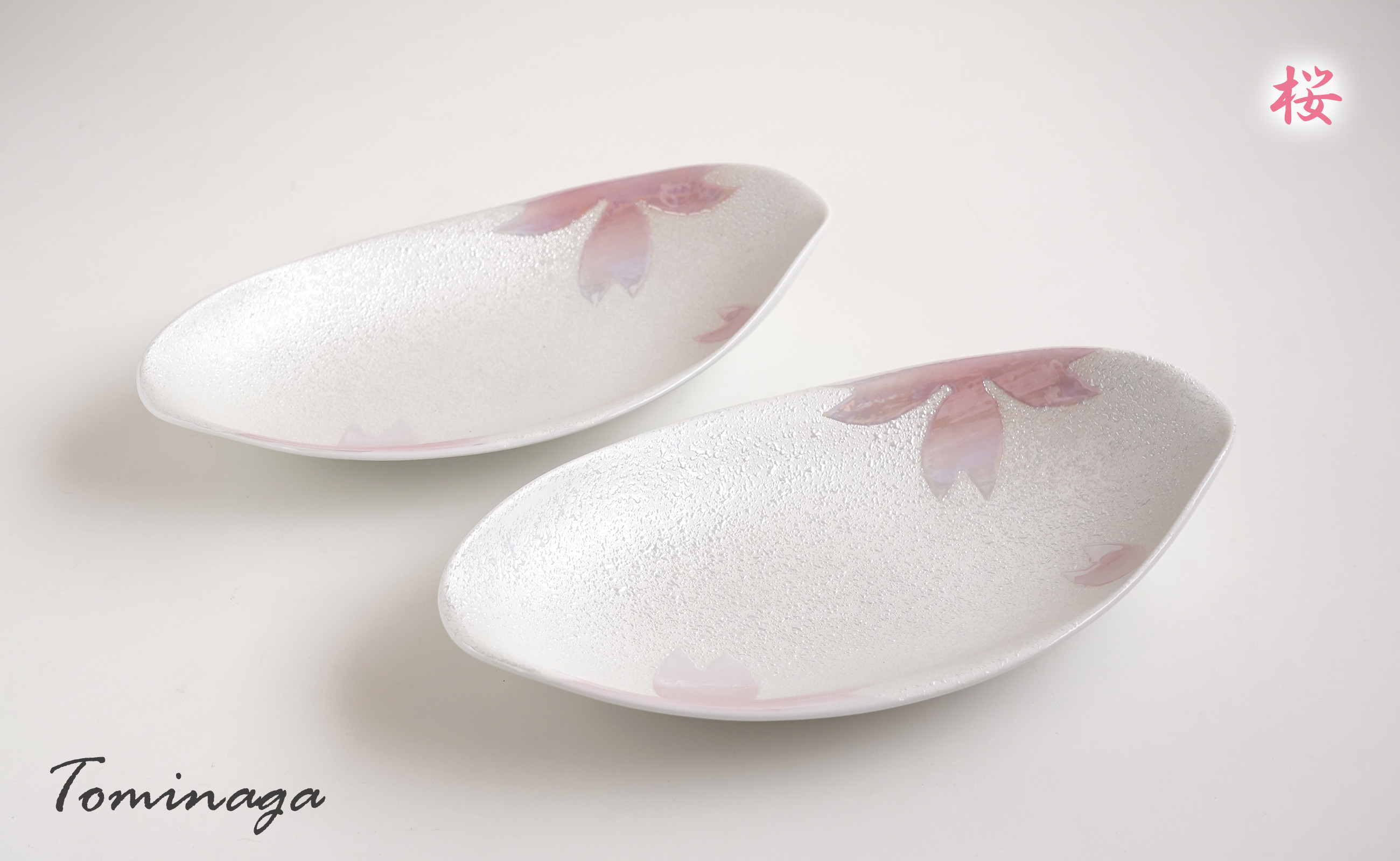 桜ラスター楕円皿と小鉢・十角杯のペアセット 有田焼 富永陶磁器 A40-218