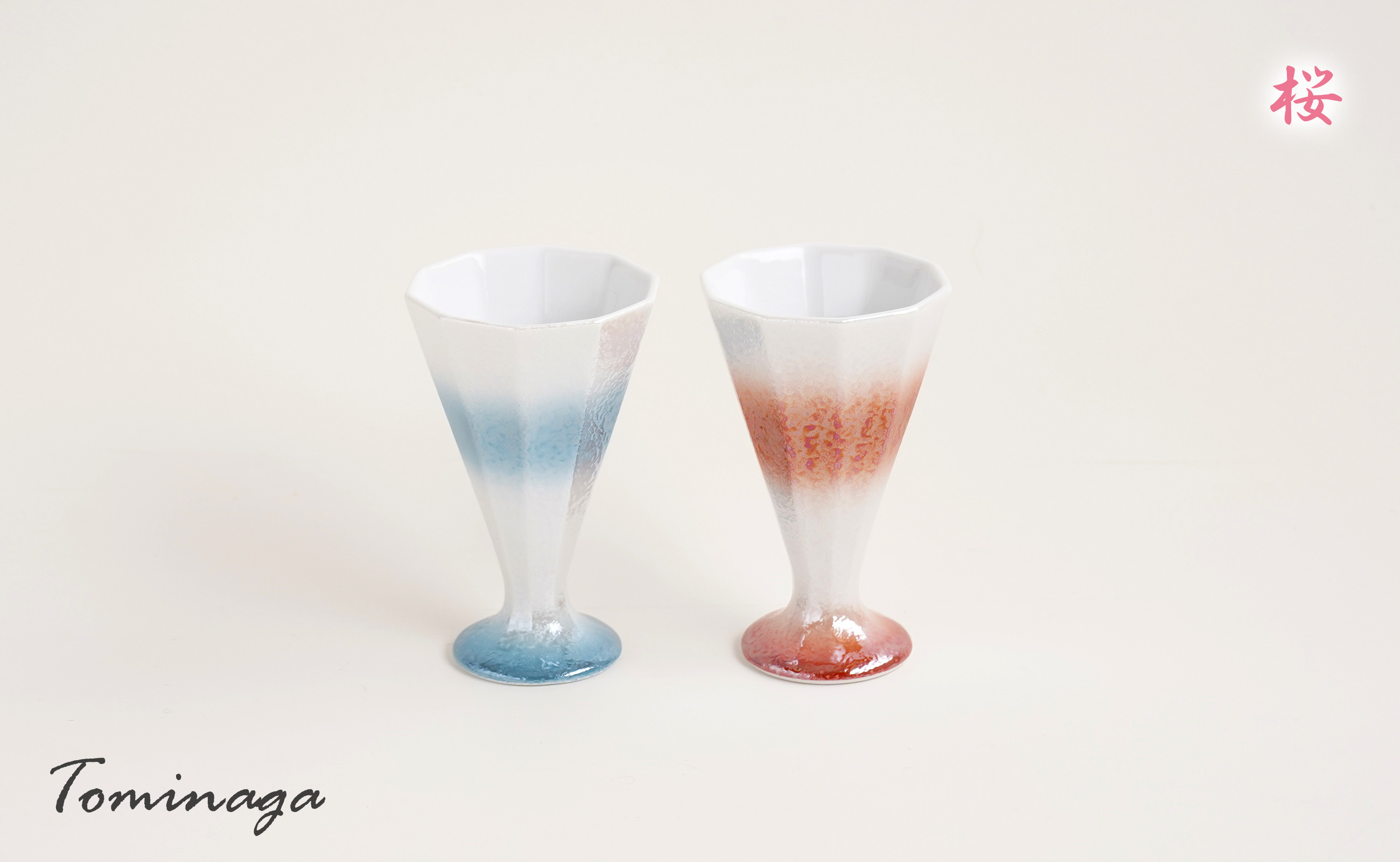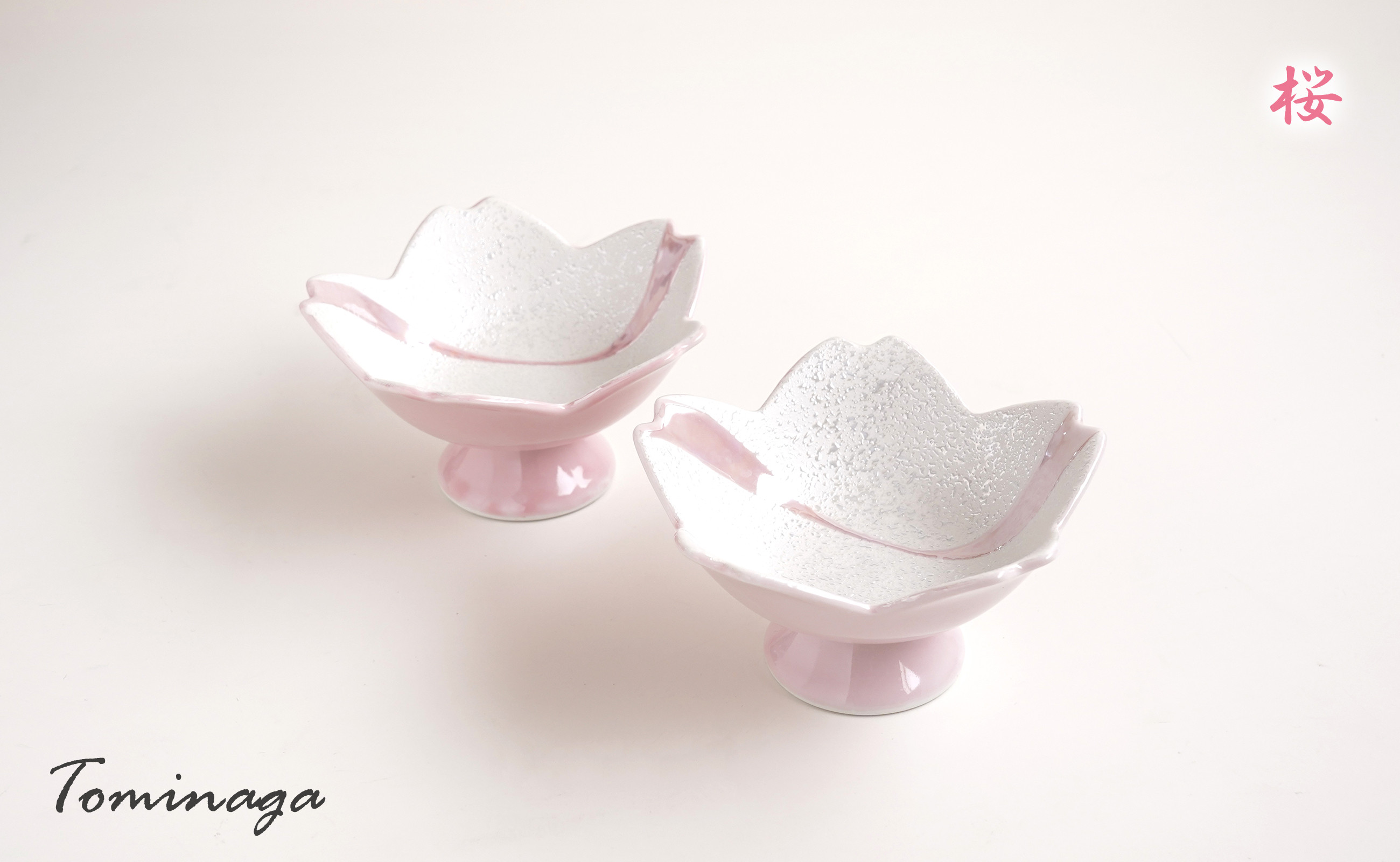 - 桜ラスター楕円皿と小鉢・十角杯のペアセット 有田焼 富永陶磁器 A40-218