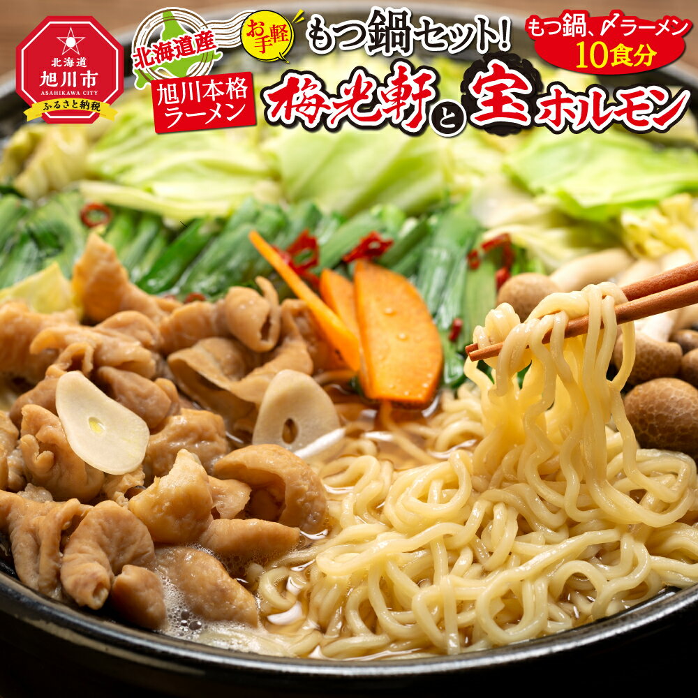 【ふるさと納税】北海道産もつ鍋セット!旭川本格ラーメン”梅光軒”と”宝ホルモン”(もつ鍋、〆ラーメン10食分)_00575 | 肉 もつ 鍋 もつ鍋 ラーメン セット 豚モツ 醤油 旭川市ふるさと納税 北海道ふるさと納税