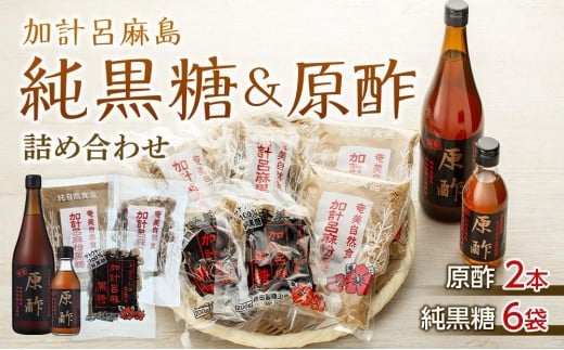 【奄美大島】加計呂麻島純黒糖(6袋)・原酢(2本)の詰め合わせ<西田製糖>☆先行予約☆